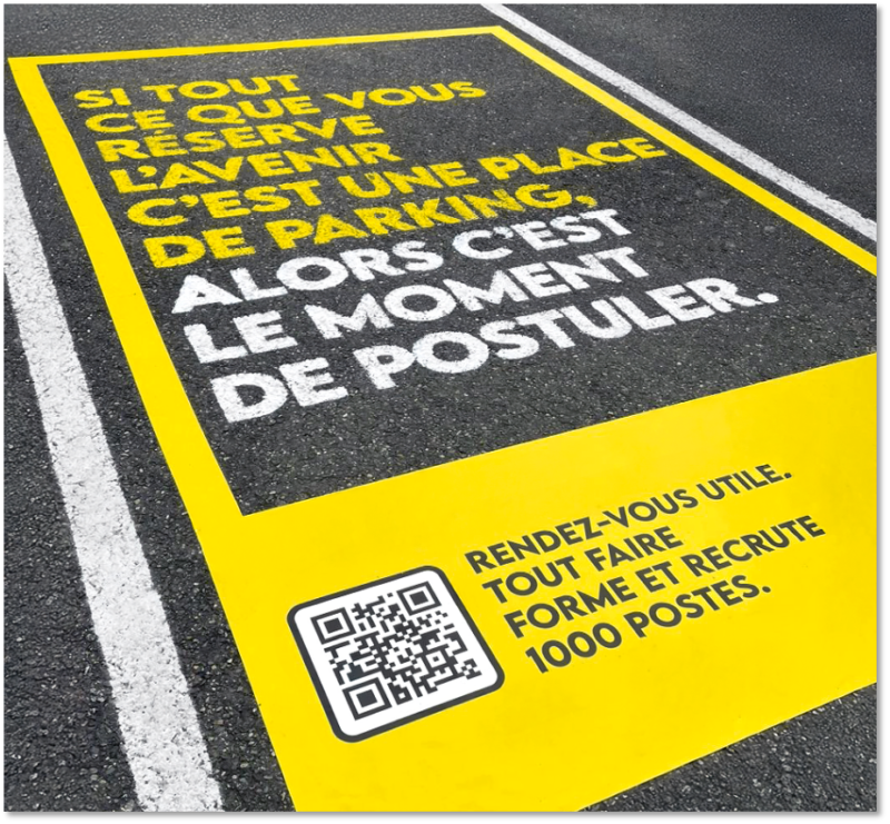 Pas de promesse abstraite ici, mais une issue concrète : quitter pour faire. Un message qui repositionne le travail utile comme un choix évident.